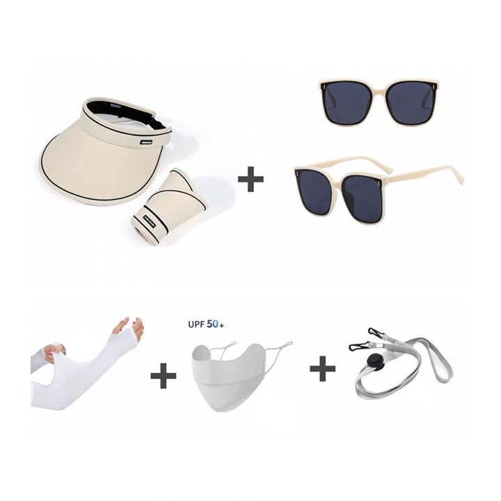 Sunscreen five piece set (empty top hat, glasses, ice sleeves, mask, windproof rope)