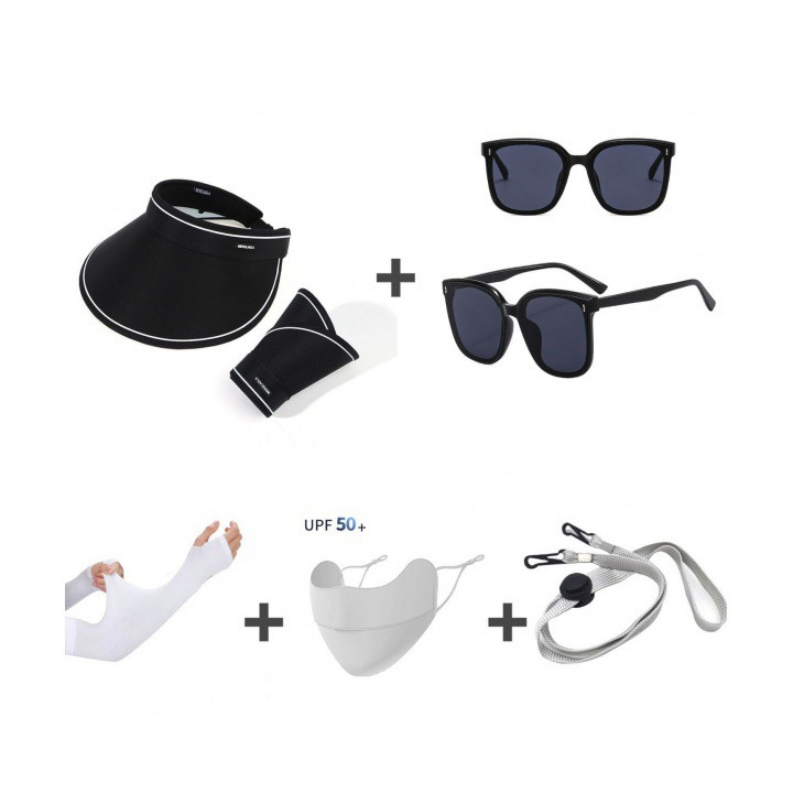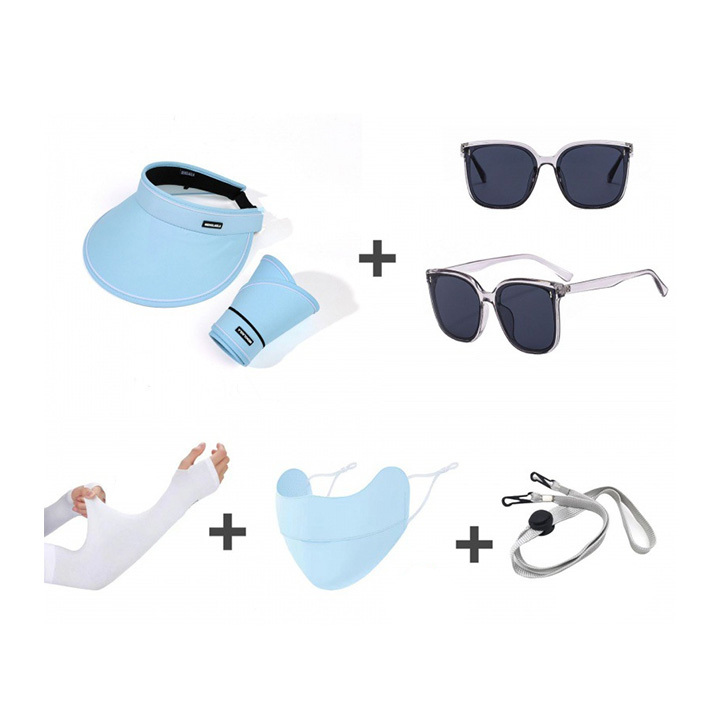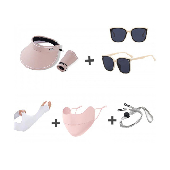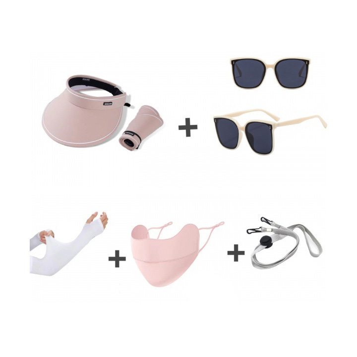 Sunscreen five piece set (empty top hat, glasses, ice sleeves, mask, windproof rope)